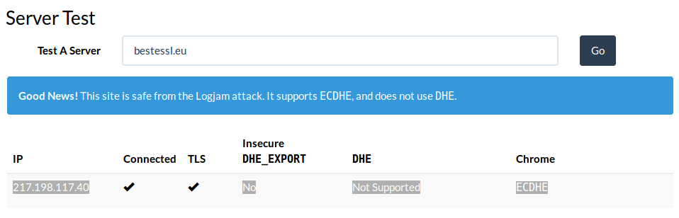 Nach der Richtigstellung überprüfen Sie Ihren Server noch einmal und überzeugen Sie sich davon, dass er die schwachen DH-Verschlüsselungen nicht verwendet.